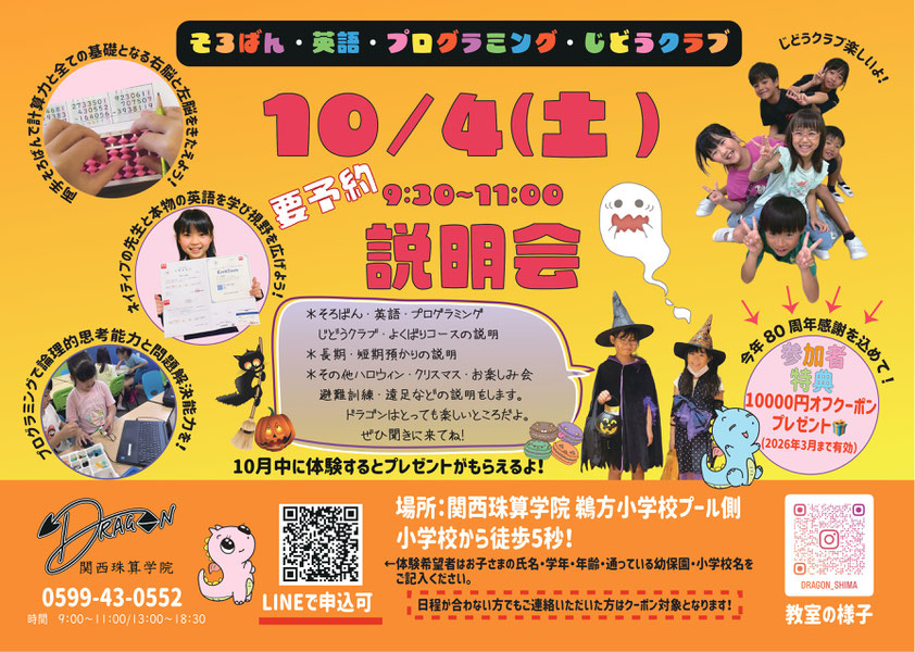 戦後1945年から三重県志摩市で関西珠算学院としてそろばん学校を設立。これまでに多くの有段者を輩出。1998年から英語を導入し、現在では外国人講師が質の高い授業を展開。2013年からは民間放課後児童クラブを開設し、数年後には小学校で必須科目となったプログラミングを先駆け導入。当学院は社会に出た時に必要な力(計算力、思考力、行動力、コニュニケーション能力)を育て、競技会やサマークラブ、遠足などを通して楽しく賢くそして特別な経験ができる場所である。